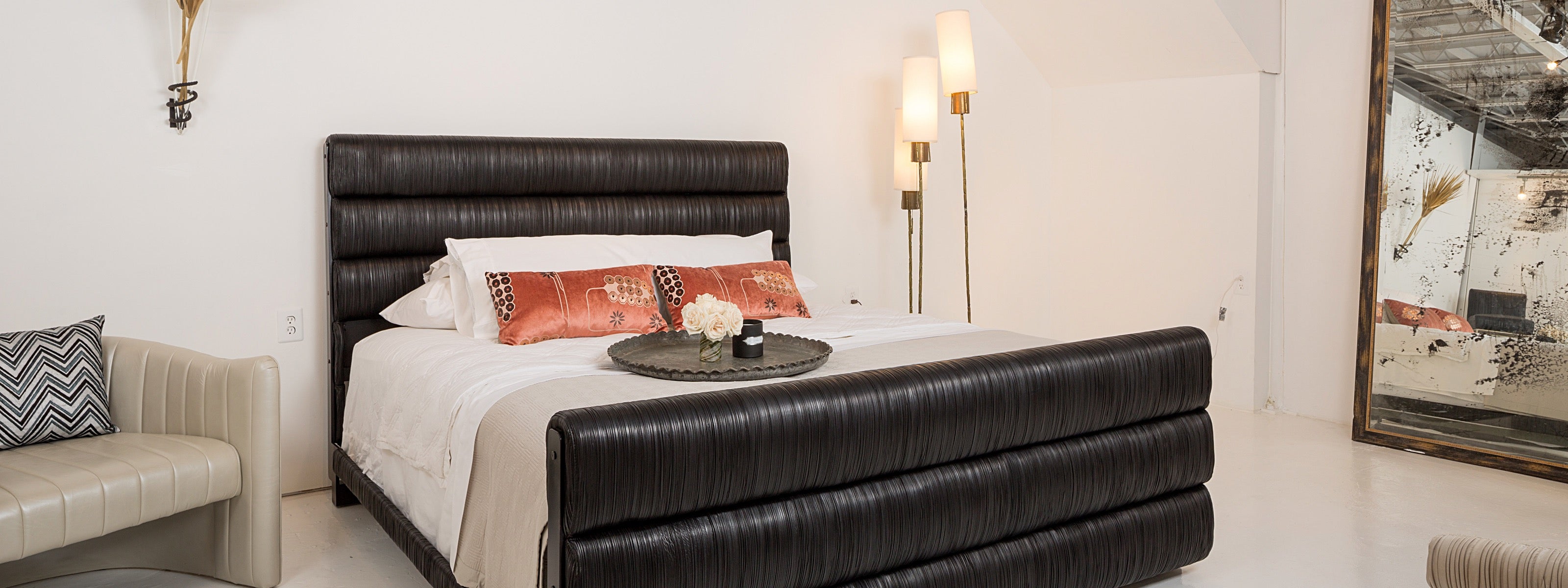 Forutny Pleated Leather bed and custom furniture.